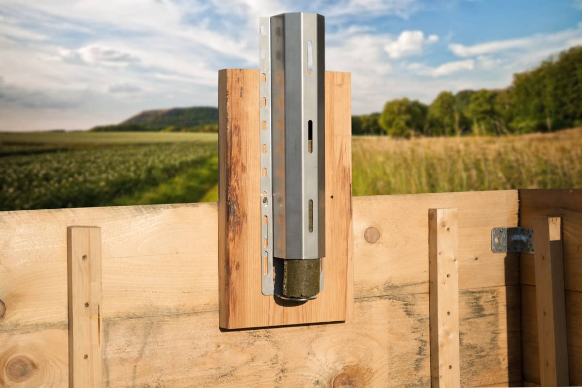 Das Beschäftigungsmaterial Funluz wird in unsere Halterung (Knabberrohr Funstick Flex) in der Bucht im Schweinestall angebracht.